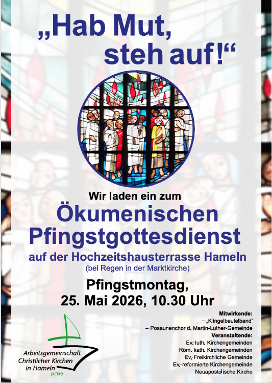 "Hab Mut, steh auf!" Pfingstmontag, 25. Mai 2026 um 10.30 Uhr, ökumenischer Gottesdienst auf der Hochzeitshausterrasse. von und mit dem ACKH